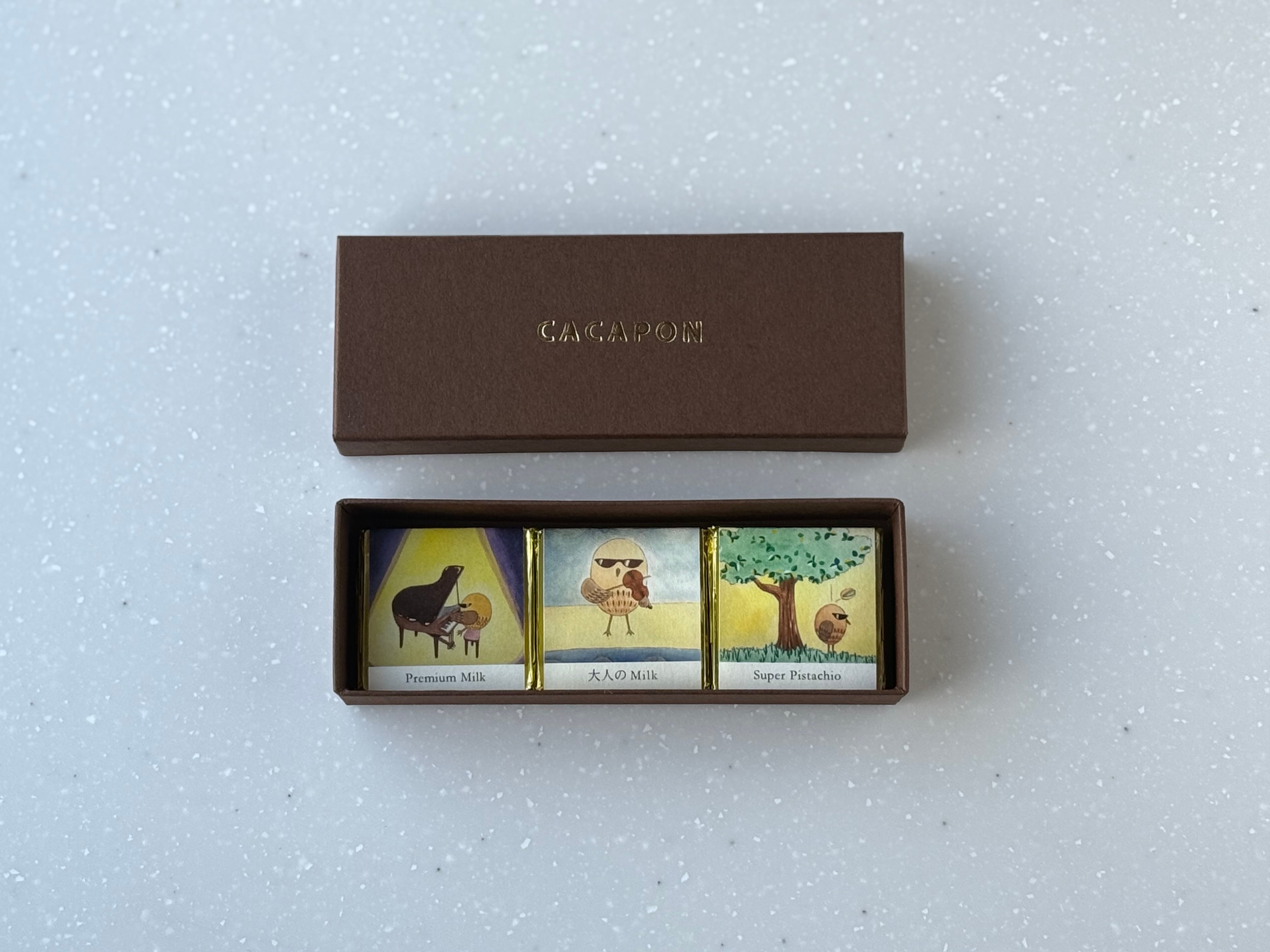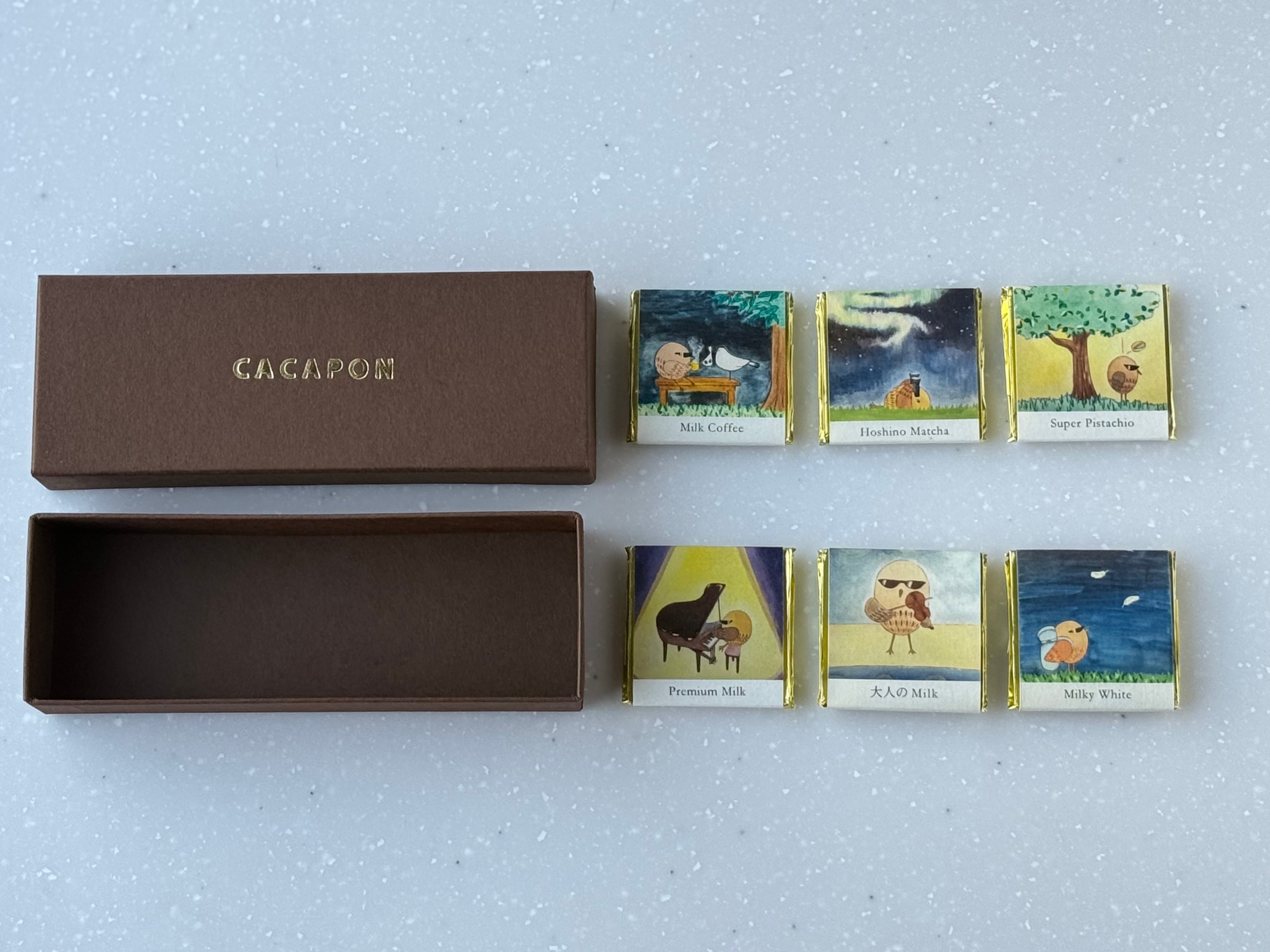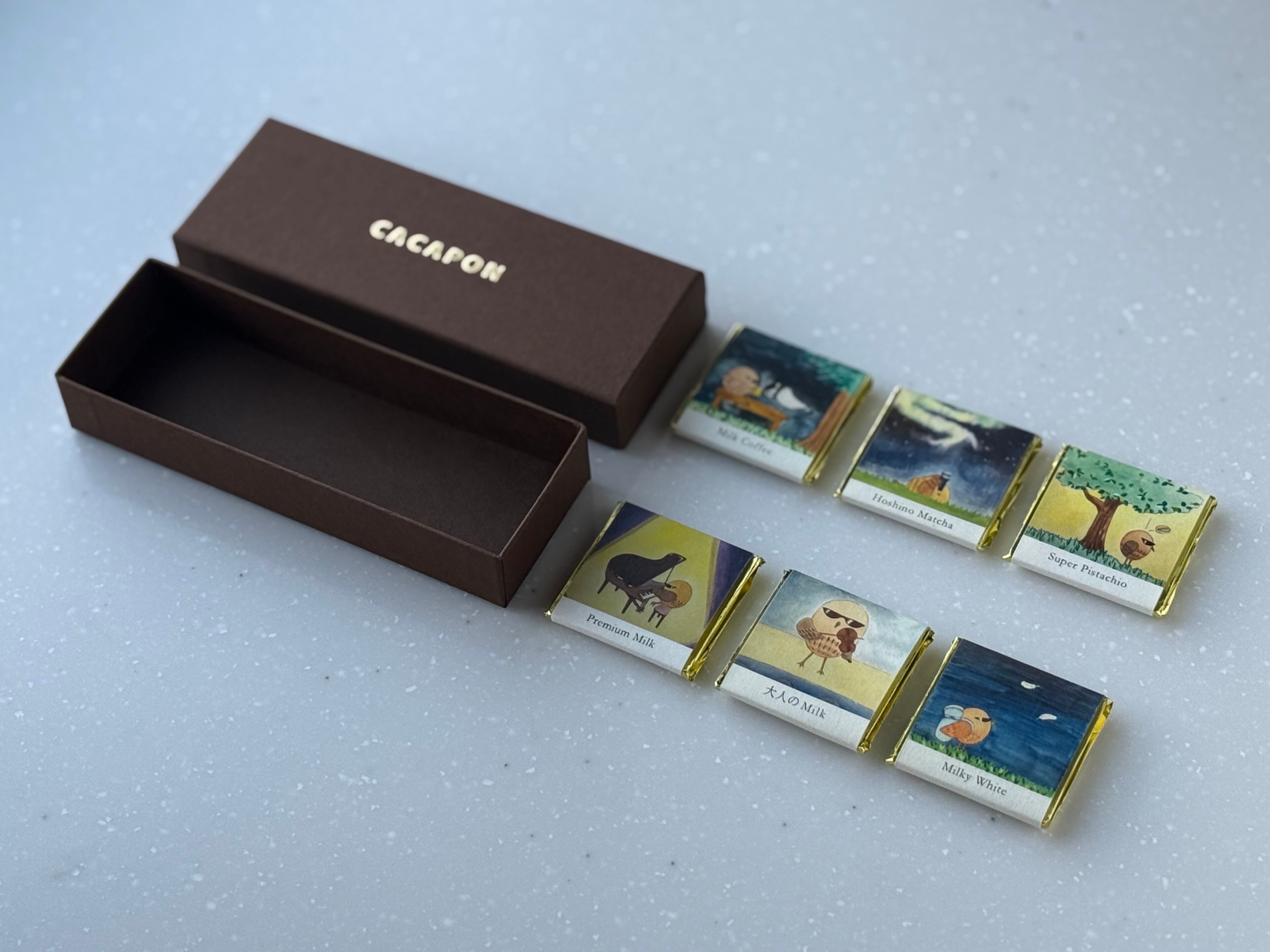 ビターチョコが入らないミルク、ホワイトチョコの6種類が入ったセットです。
