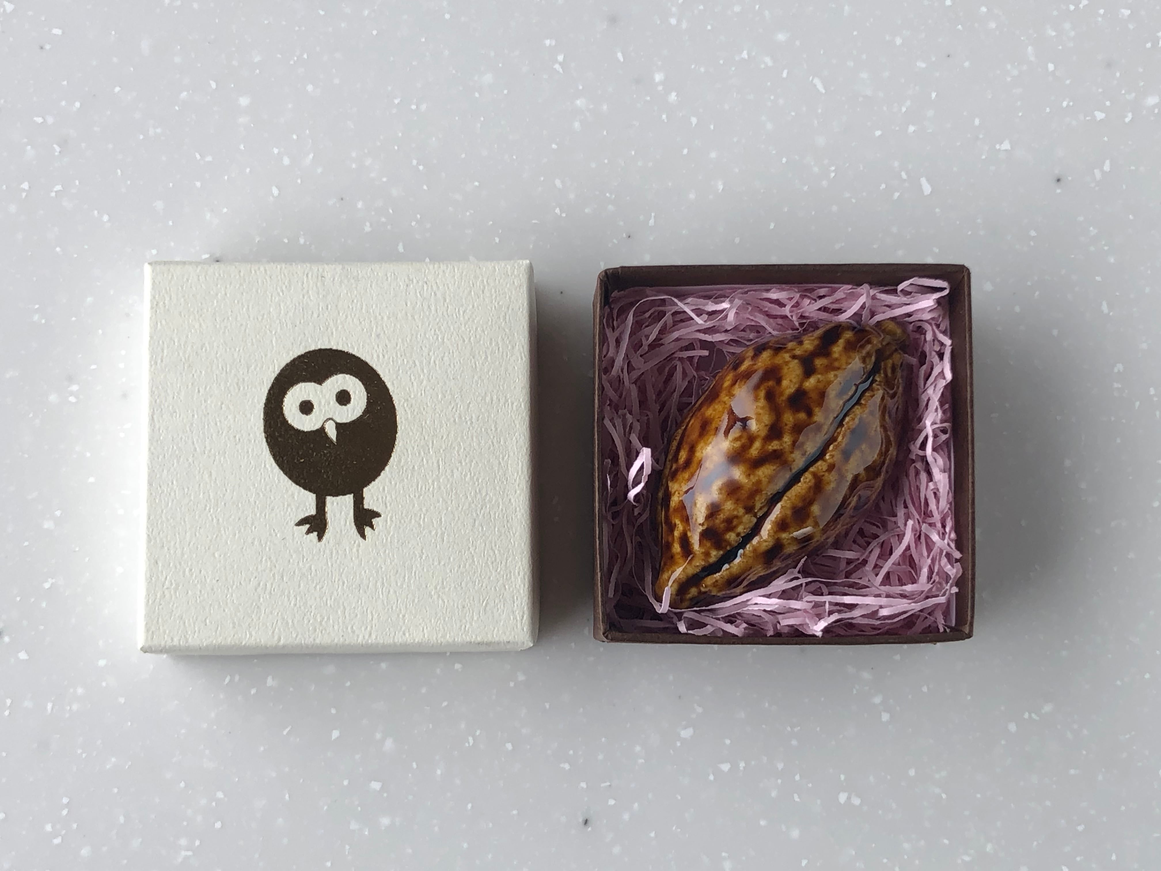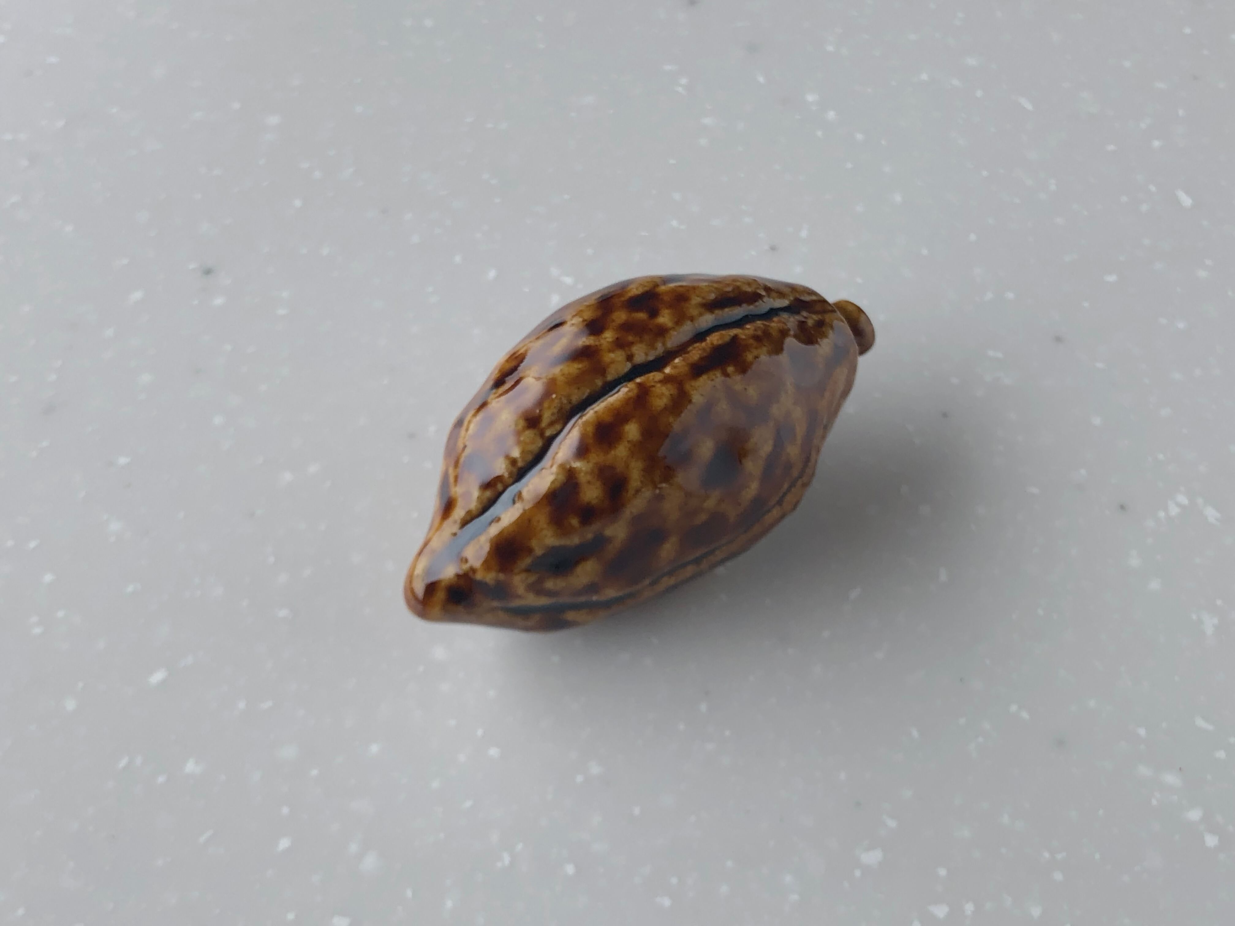 北九州市八幡東区在住のてびねり陶器・陶雑貨の「COCOSTONE」さんに製造して頂いた「カカオポッドの陶器」です。